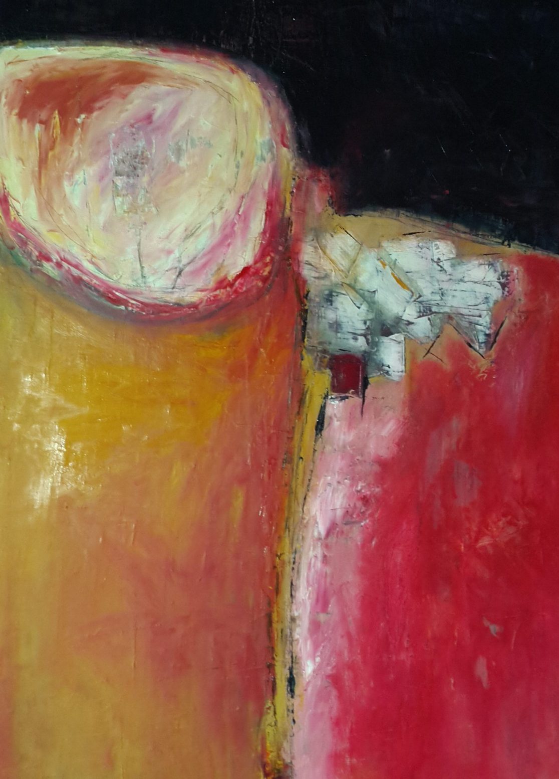 Painting mainly in oil on large canvases, Sue’s view is an abstracted one. She creates strong pieces that have complexity, not revealing themselves fully all at once.